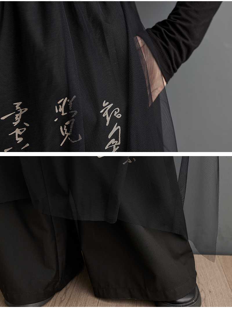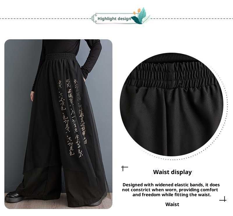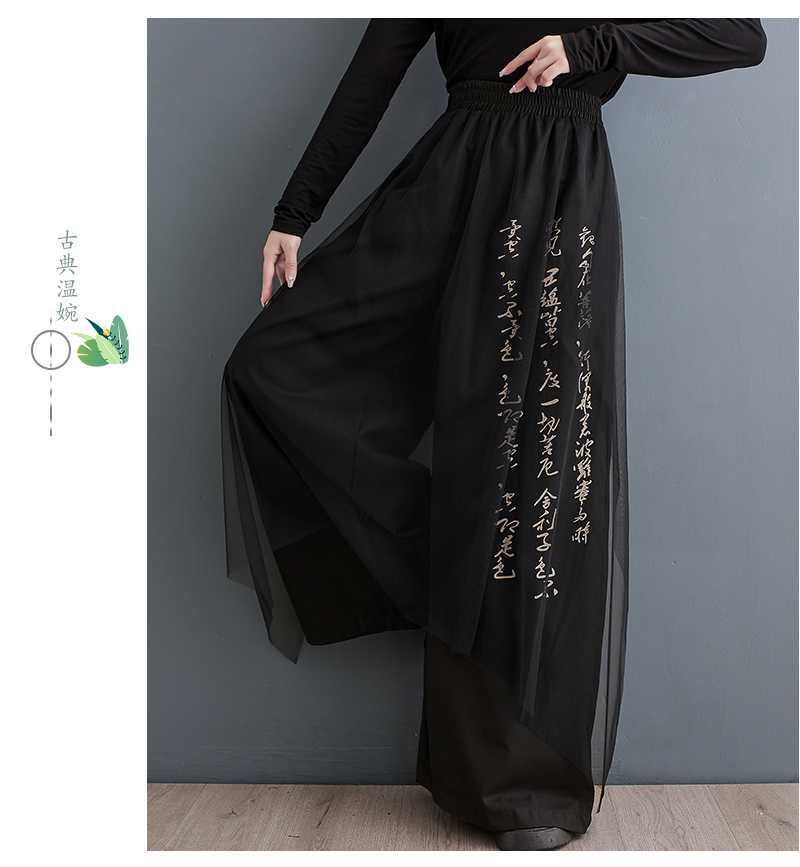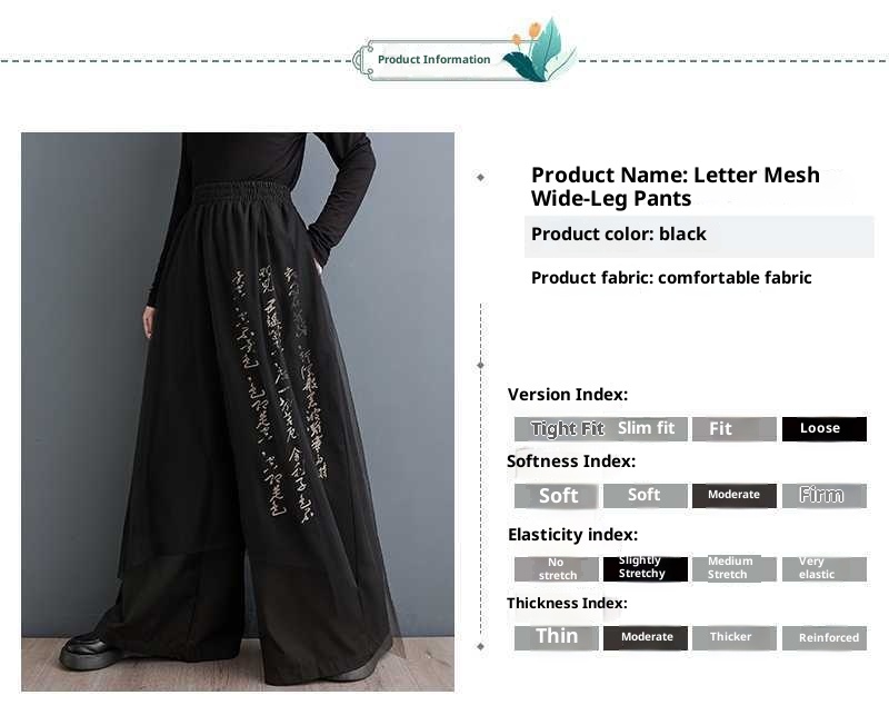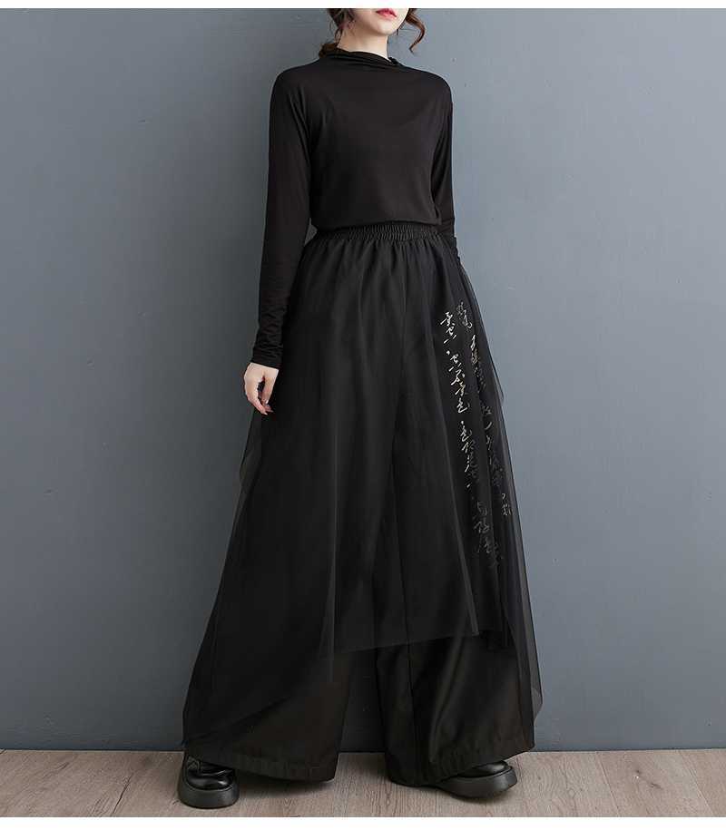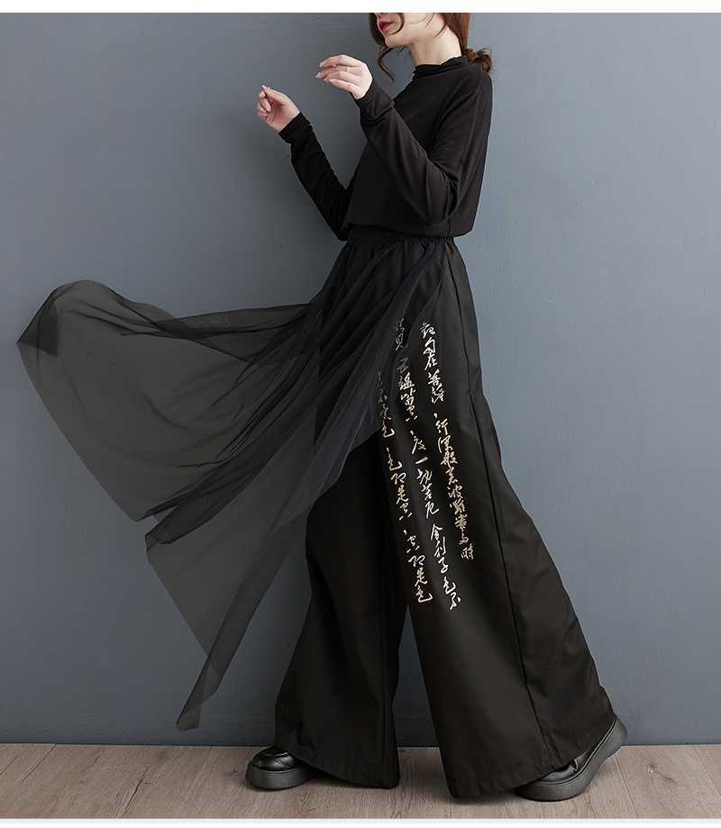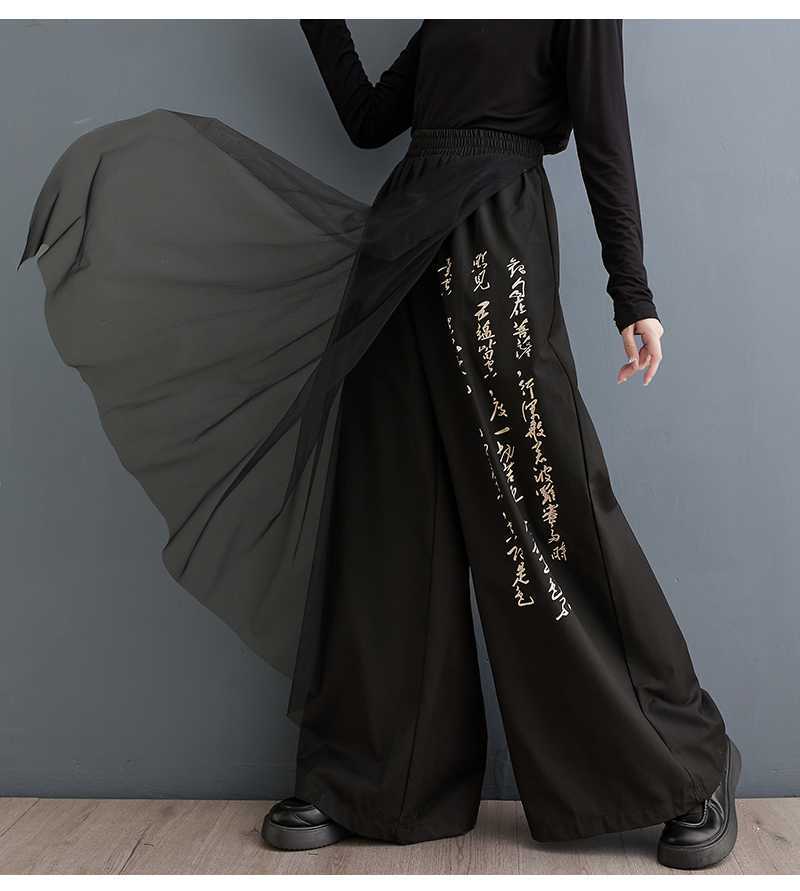 Dark Print Loose Fit Mesh Stitching Wide Leg Pants
