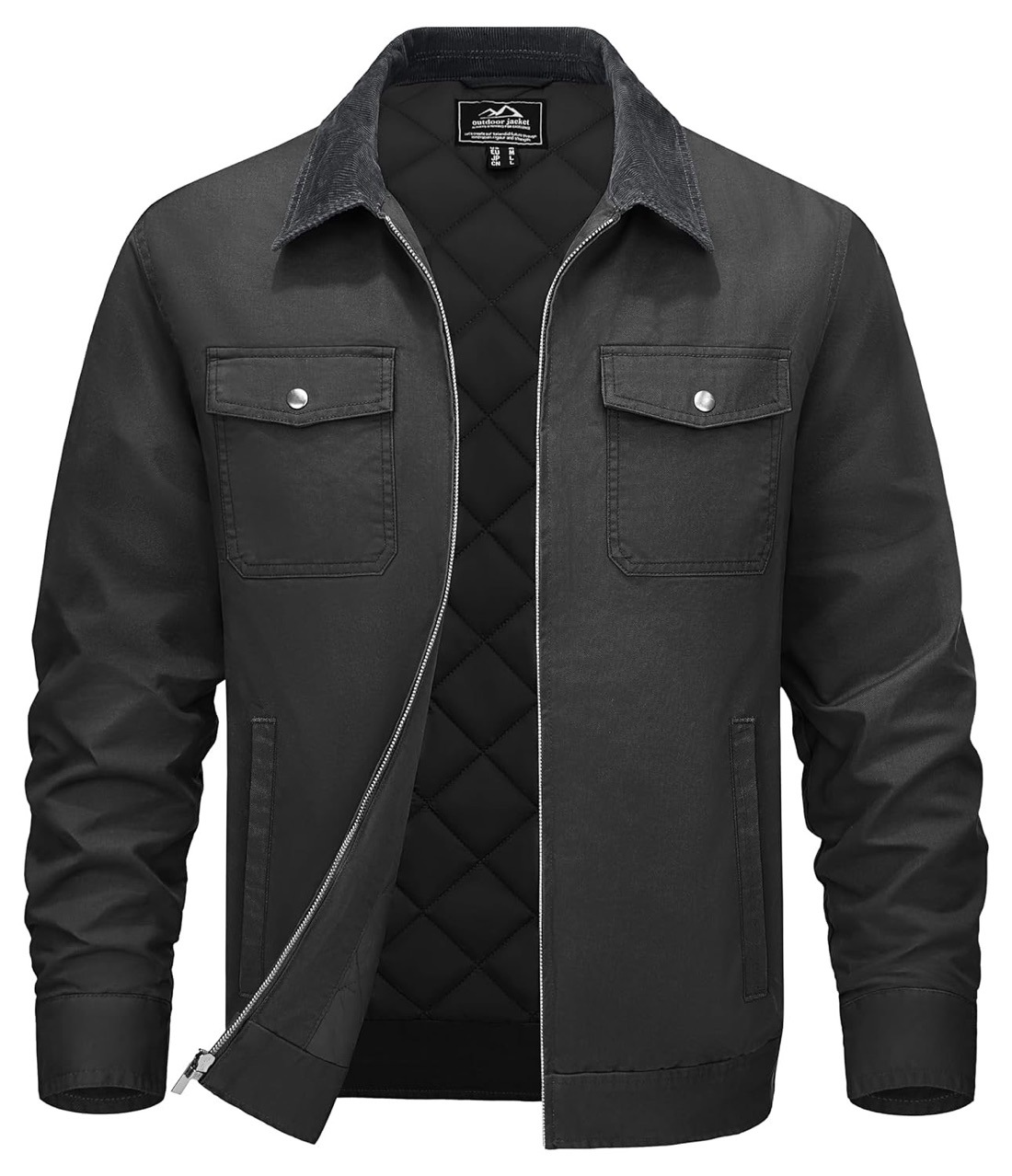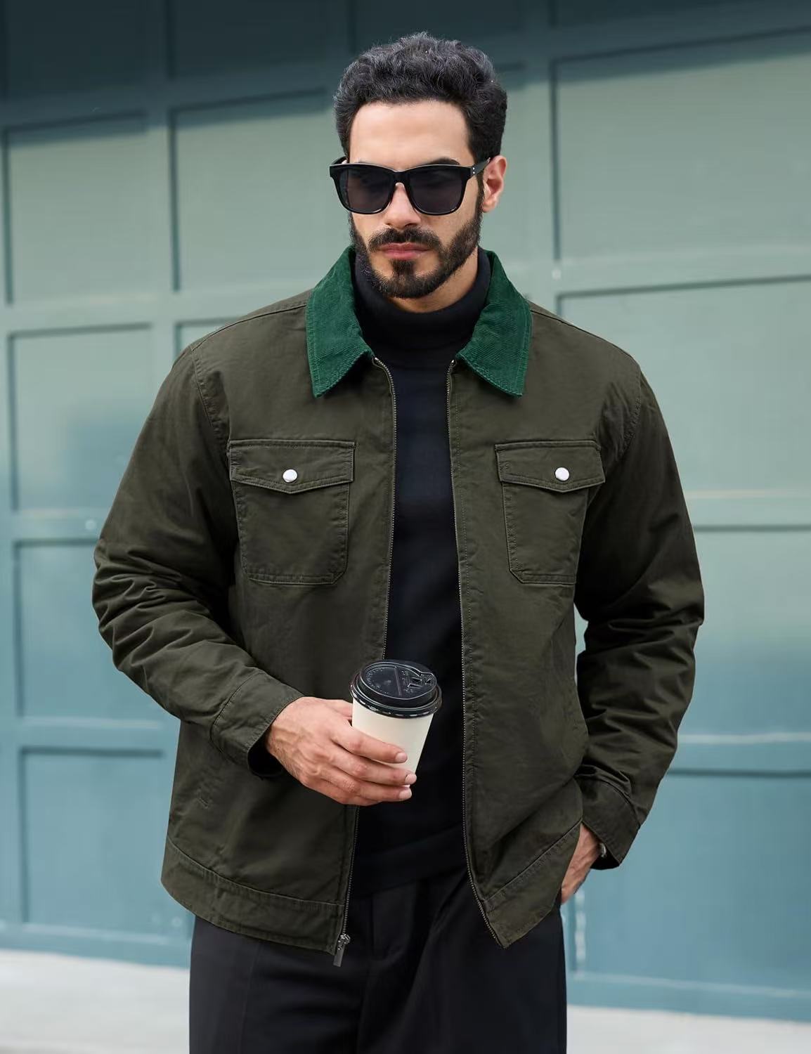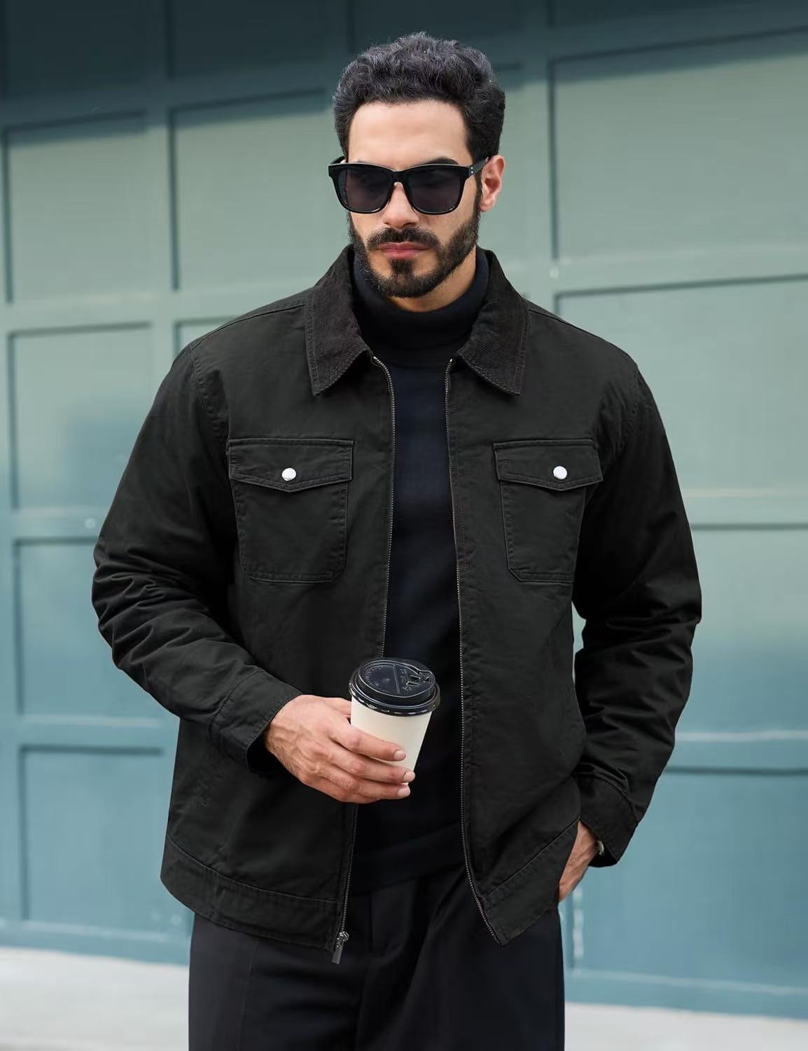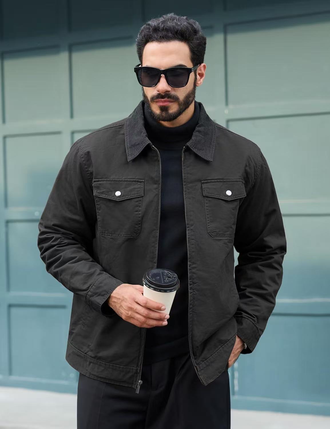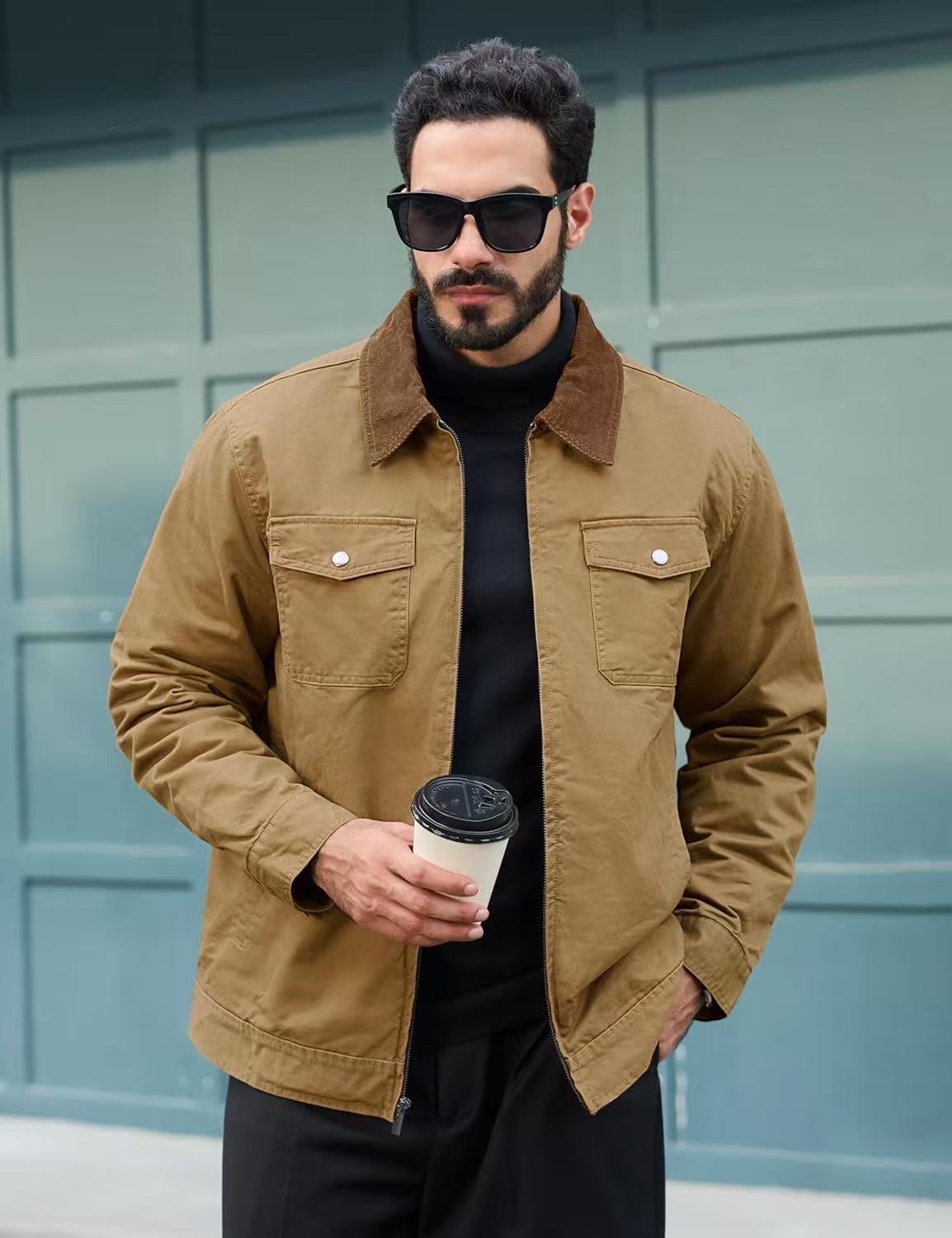 Men's Casual Cotton Padded Coat | Loose Fit, Solid Color, Polo Collar Warm Jacket