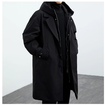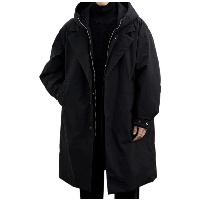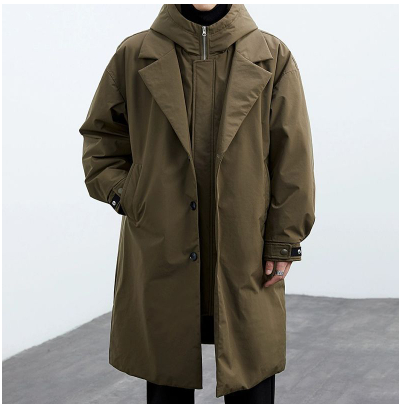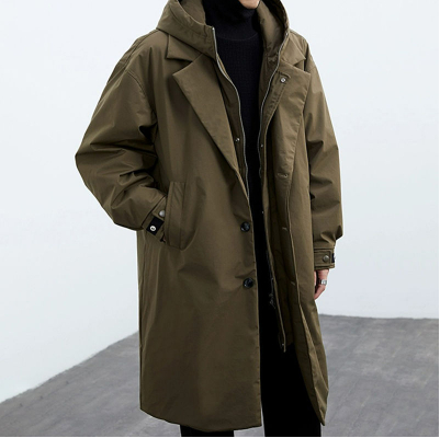 Men's Casual Mid-Length Faux Two-Piece Coat | Hooded Trench Jacket