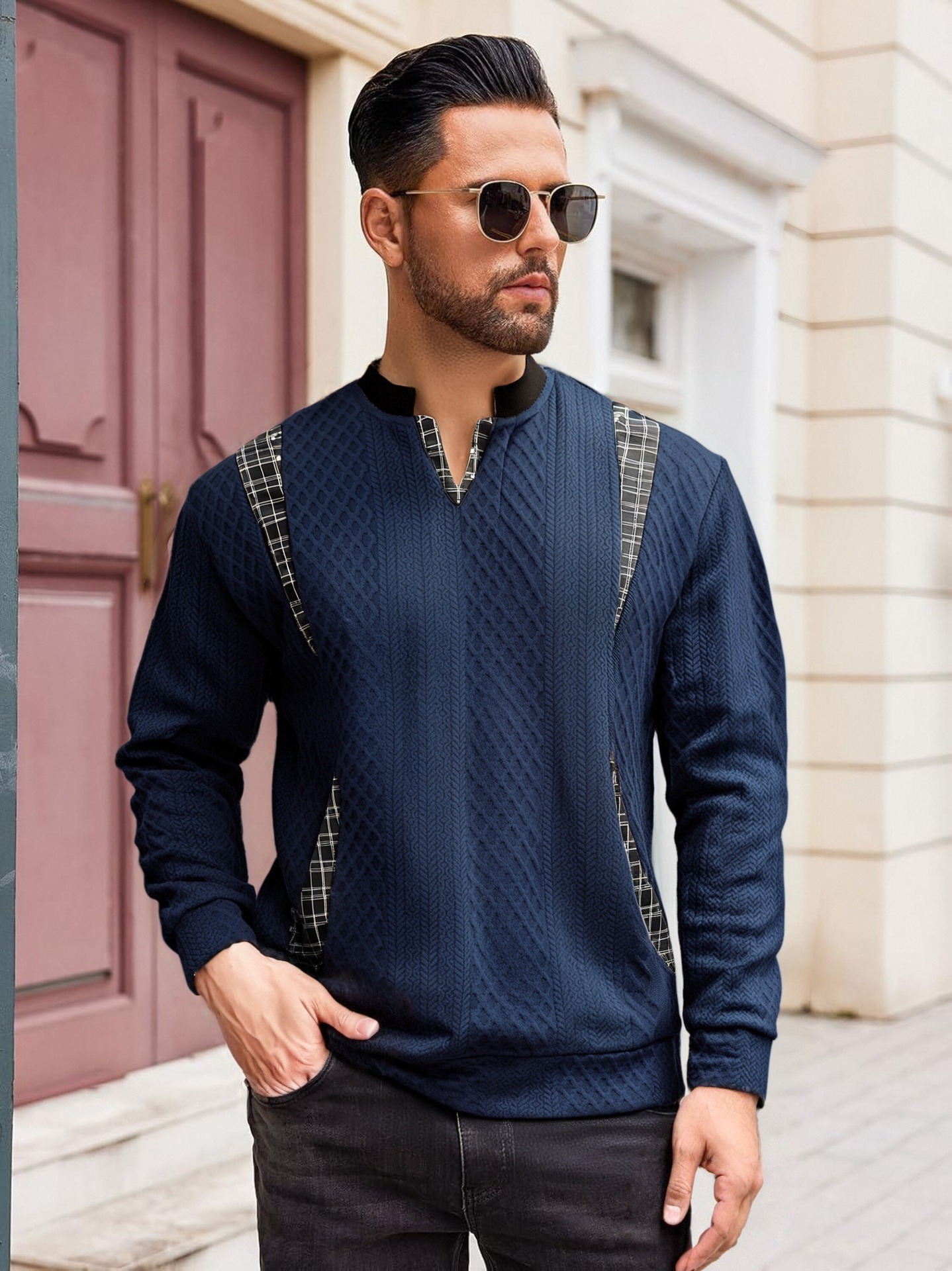 Men's Contrast Color Pullover Sweater | Casual Knit Jumper Top