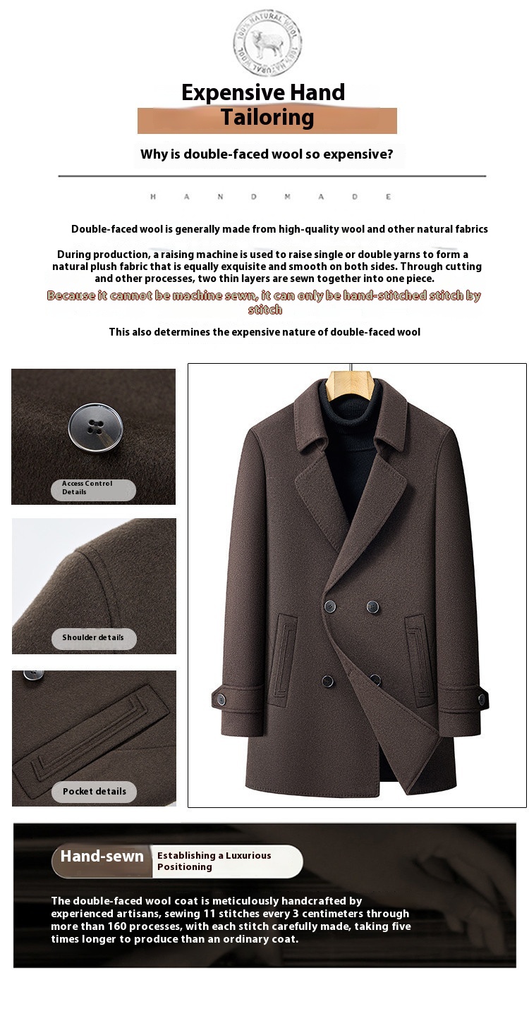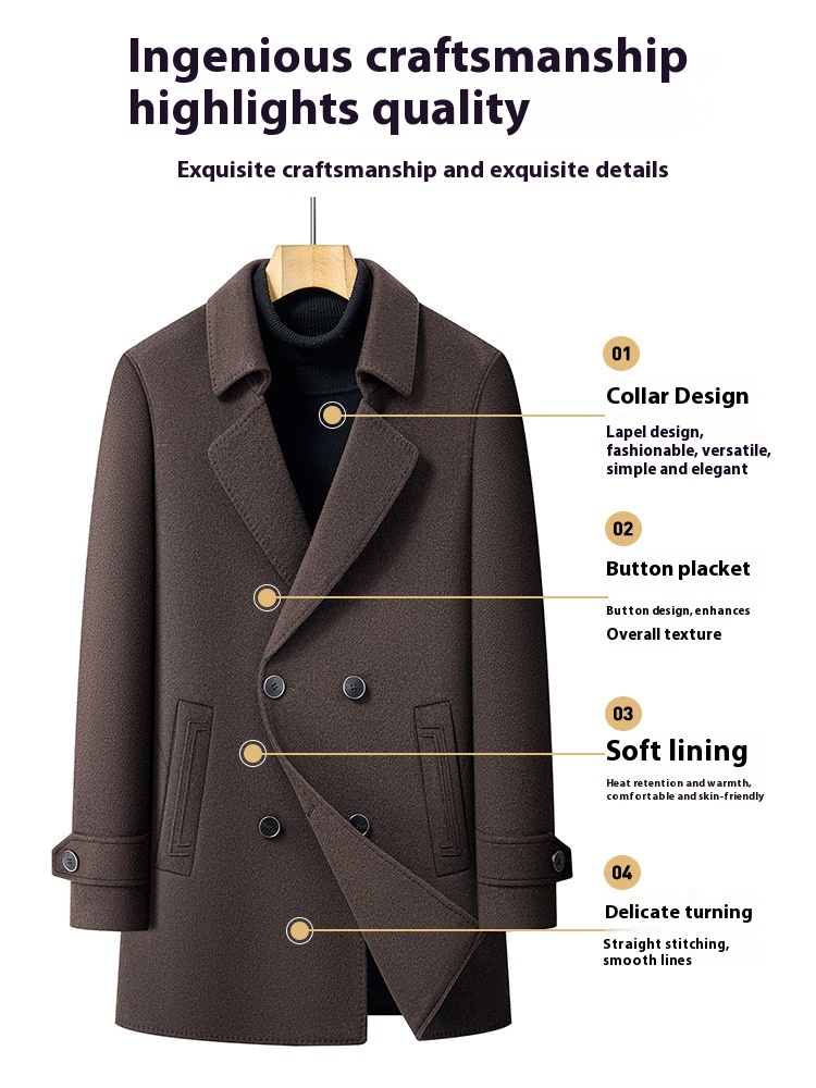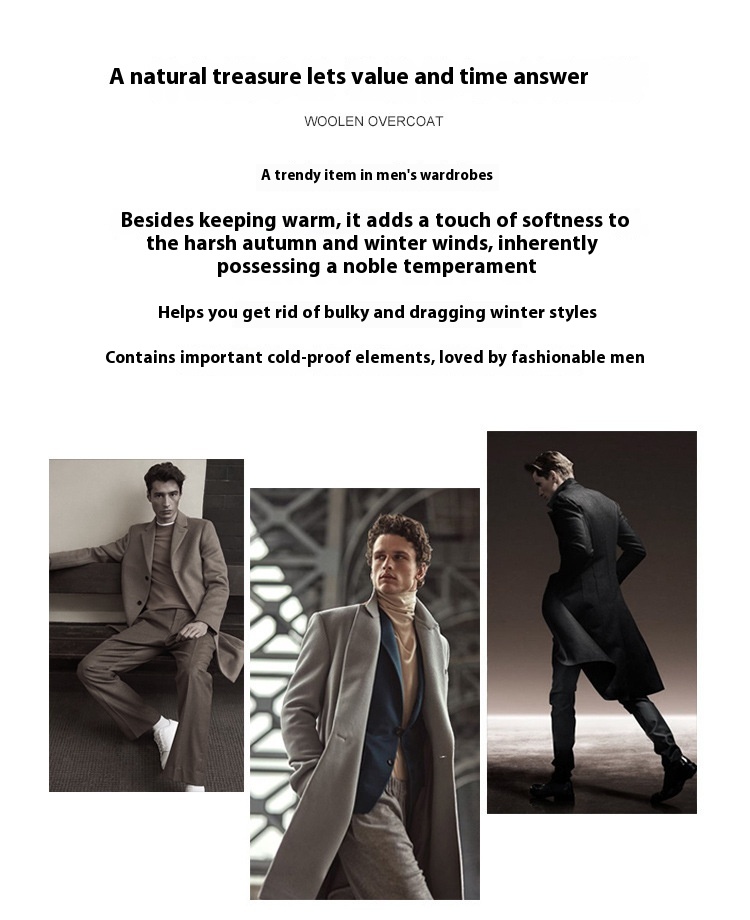 Premium Men's Wool Blend Topcoat | Mid-Length Double-Sided Suit Collar