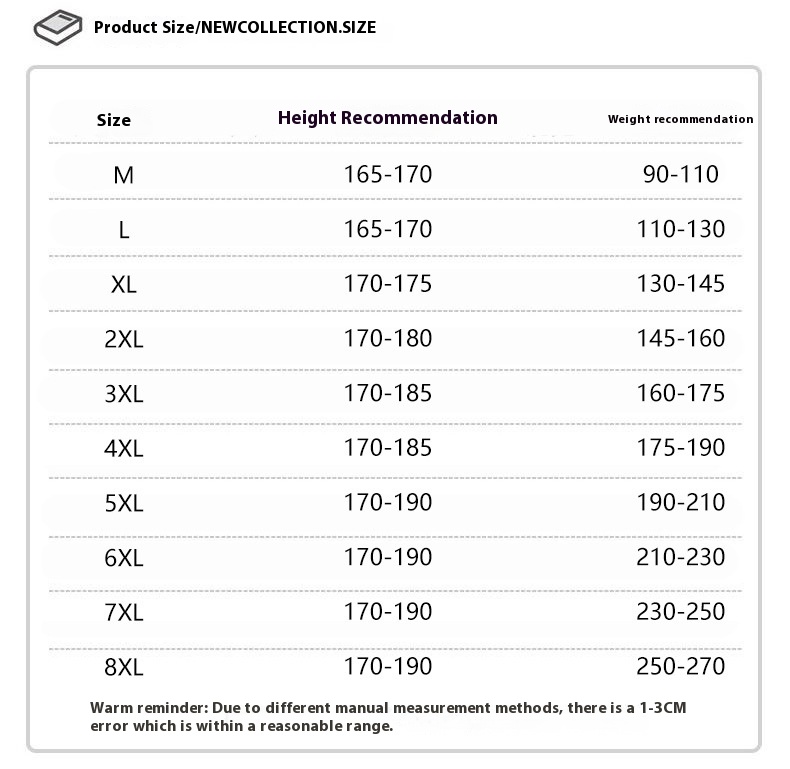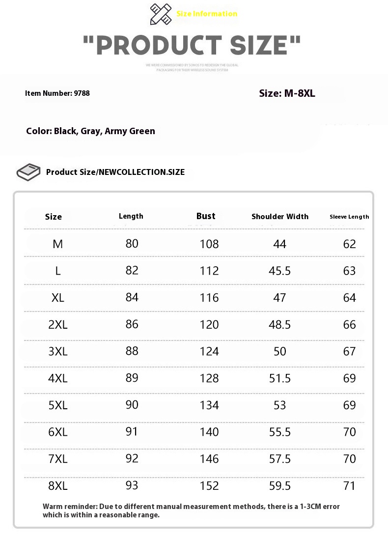 Size: M,L,XL,XXL,3XL,4XL,5XL,6XL,7XL,8XL