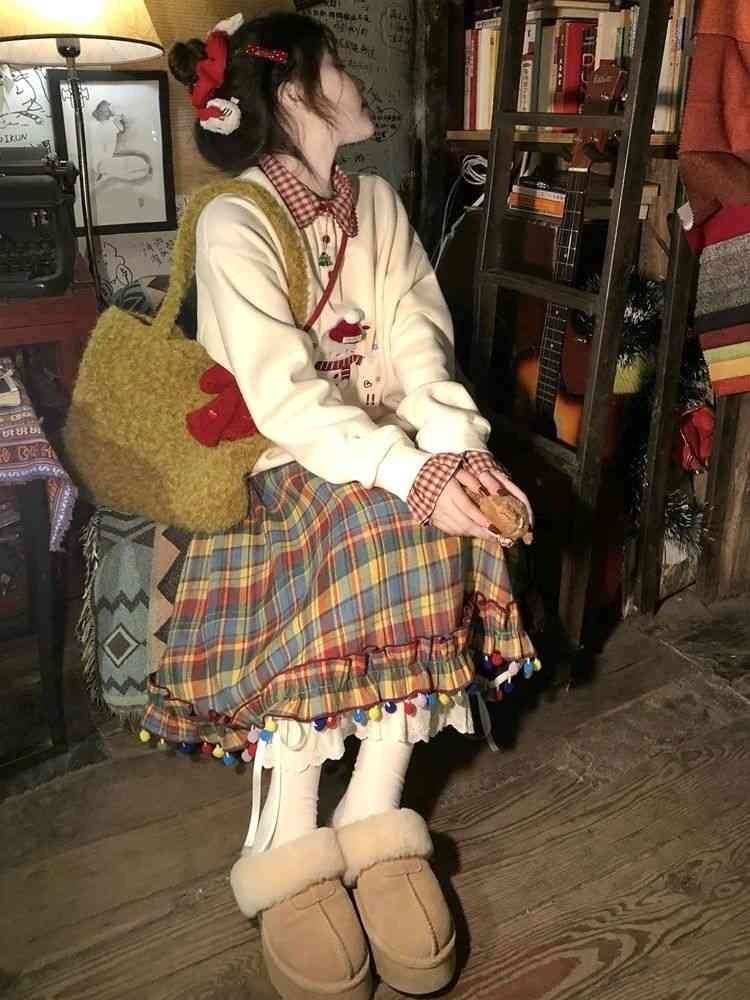 Women's Christmas Retro Color Plaid Skirt