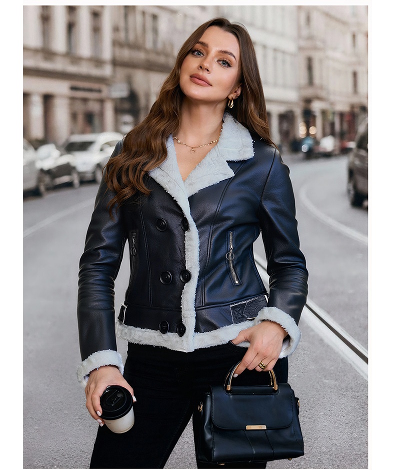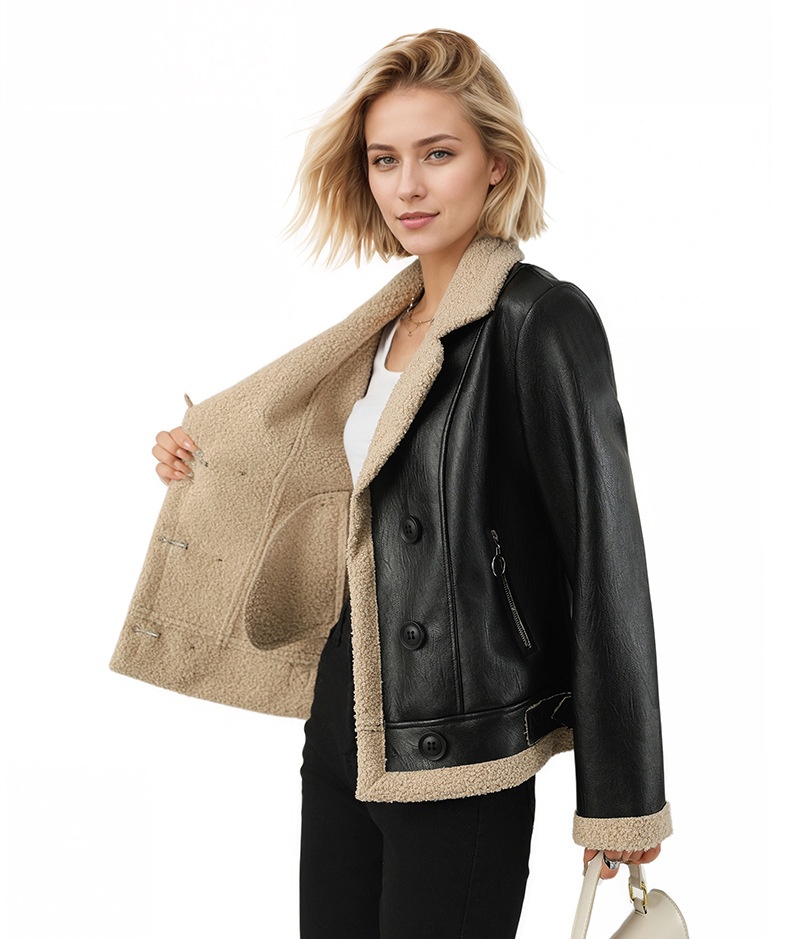 Women's Fleece Lined Faux Leather Coat
