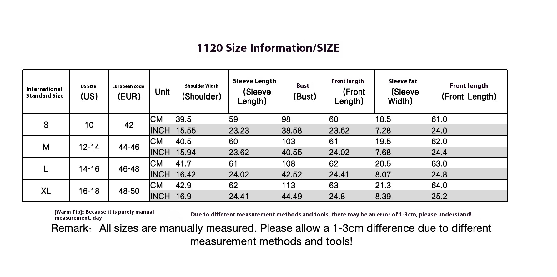 1. Asian sizes are 1 to 2 sizes smaller than European and American people. Choose the larger size if your size between two sizes. Please allow 2-3cm differences due to manual measurement. 2. Please check the size chart carefully before you buy the item, if you don't know how to choose size, please contact our customer service. 3.As you know, the different computers display colors differently, the color of the actual item may vary slightly from the following images.